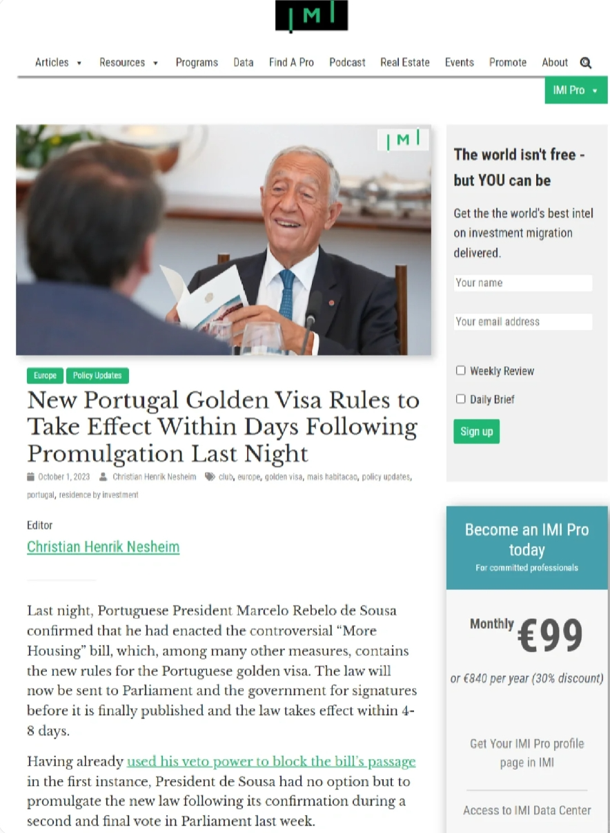 葡萄牙新政解读